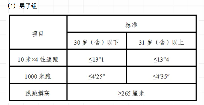 研究生及以上学历报考人员参加体能测评三项内容中有两项达标的,视为合格。非研究生及以上学历报考人员体能测评三项全部达标方为合格。