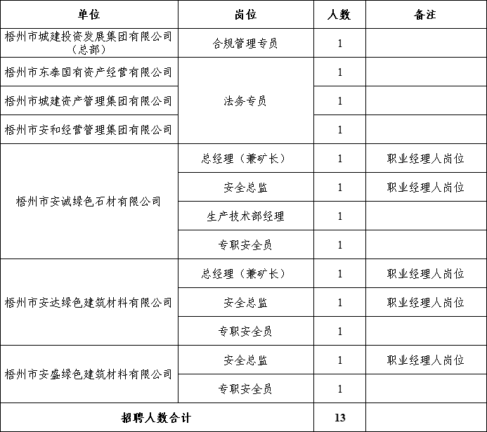 岗位要求详见《梧州市城投集团招聘计划表》(附件1)。