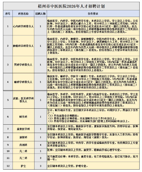 梧州市中医医院因业务发展需要,现面向社会公开招聘,现将有关公告如下: