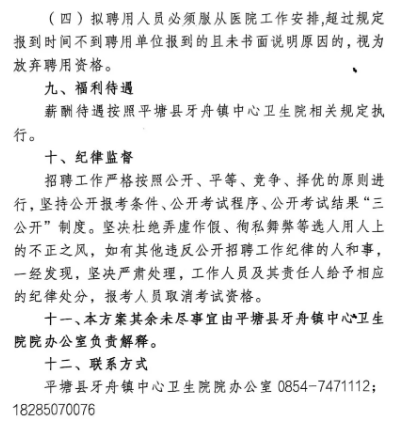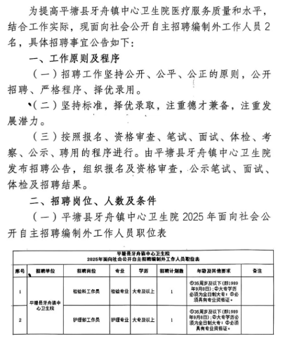 平塘县牙舟镇中心卫生院2025年自主招聘编制外工作人员公告