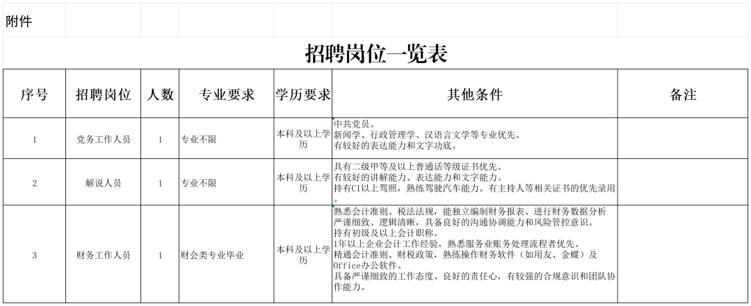 6.其他要求见《招聘岗位一览表》(见附件)。
