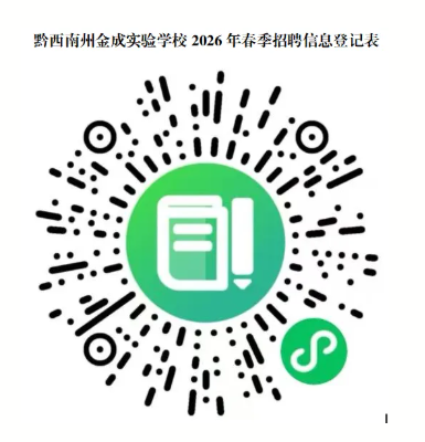 1、微信扫描下方二维码,填写《黔西南州金成实验学校2026年春季招聘信息登记表》,并上传个人简历、相关证书(身份证、学历证、学位证、教师资格证、获奖证书等)。