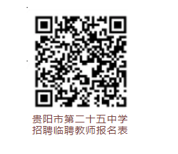 2.报名方式:凡符合应聘条件者,请扫描下方二维码填写《贵阳市第二十五中学招聘临聘教师报名表》,确保所填信息真实有效。
