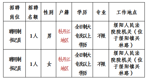 根据工作需要,绥阳人民法院面向社会公开招聘聘用制书记员。现将有关事项公告如下: