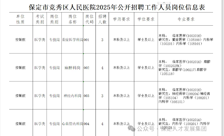 岗位信息详见《保定市竞秀区人民医院2025年公开招聘工作人员岗位信息表》。