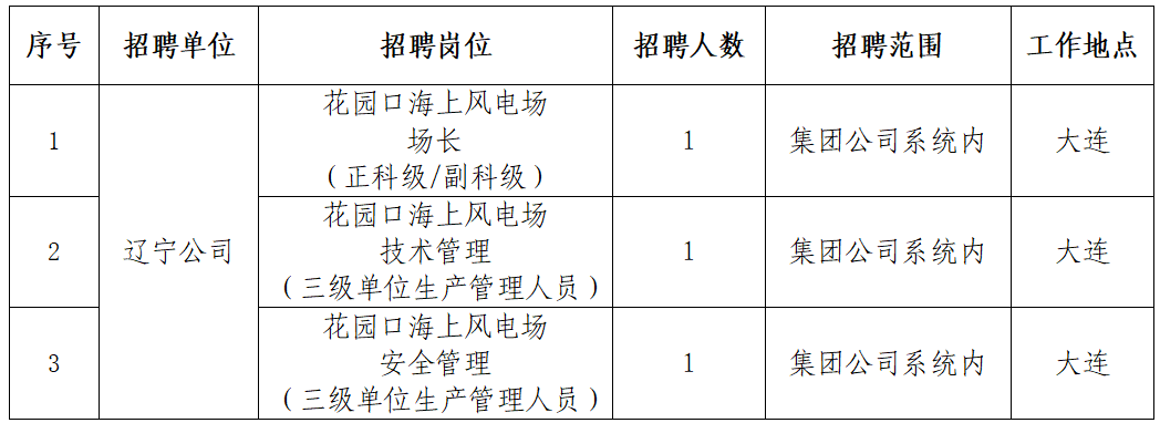 上述材料扫描件统一压缩为一个压缩包,压缩文件不超过10M,压缩文件命名格式为“应聘岗位+姓名”(例:花园口海上风电场场长+张某),发送至报名邮箱。