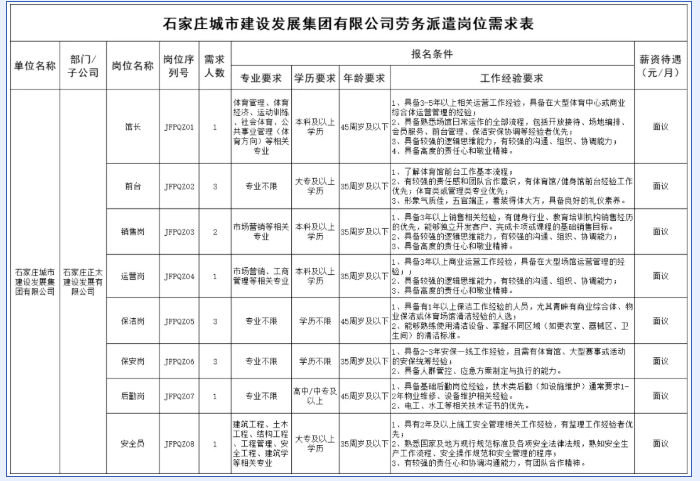 石家庄城市建设发展集团有限公司劳务派遣制人员招聘